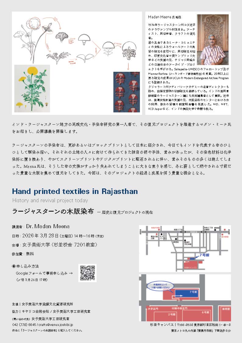 インド・ラージャスターン地方の民族文化・布研究の第一人者で、その復元プロジェクトを推進するマダン・ミーナ氏をお招きし、公開講義を開催します。